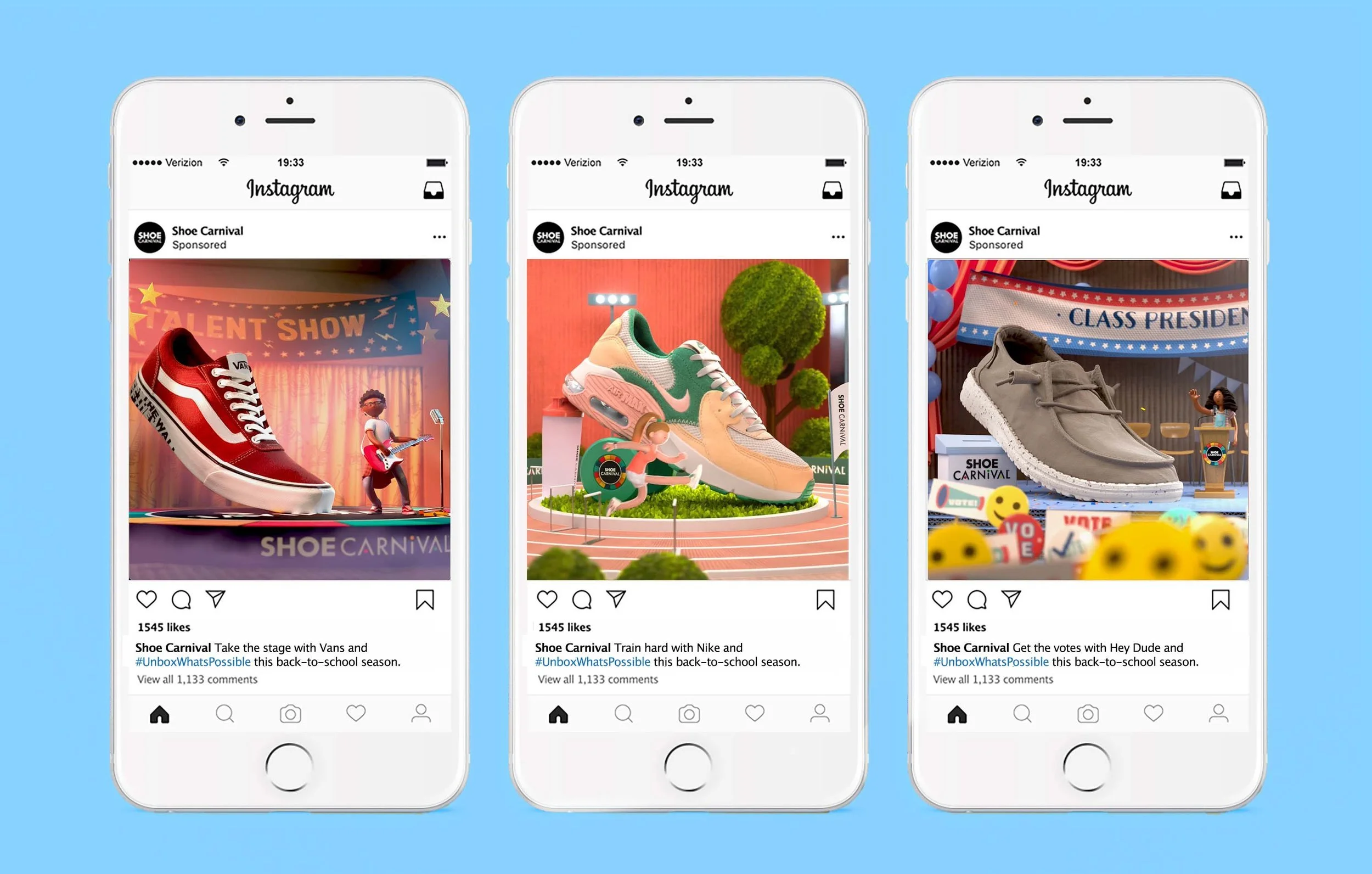 In this campaign, a simple shoe box became a launchpad for big dreams. When kids opened their boxes, they were whisked into vibrant worlds where they ruled the court, aced the classroom, or stole the show on stage. “Unbox What’s Possible” celebrates the idea that with the right pair of shoes, anything feels within reach.
